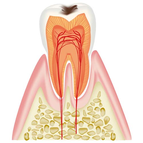 エナメル質に限局した虫歯をC1、象牙質までの虫歯をC2、神経までの虫歯をC3、歯の頭が全てなくなっている虫歯をC4といい進行度によって分類されています。